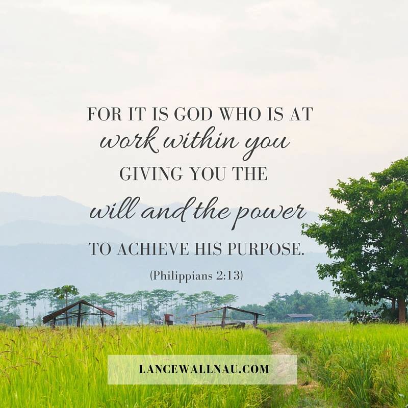 I love this verse… it reminds me that it is not all up to me to get things done for the Kingdom. I need to say “yes” when God calls me to do something… and do it to the best of my ability…but I cannot do it all in my own strength. There are times, that we cannot see the outcome… we cannot imagine how God can use us. God loves to call us to do things that are out of our comfort zones…to step out and minister in ways we have not done before. He is always up to something new. When He puts a new idea or vision for something on our hearts, we can trust that He is working in us and will act in order to fulfill His good purpose through us. “Dear Lord, we thank You for inviting us to join You in Your plan to reach the world. We thank You for not only calling us, but for empowering us, equipping us and anointing us for the purpose You have called us to. May we not step out in our own strength, but rejoice that You are actively leading us and doing it through us. May we never shrink back in fear when You call us…may we trust that You are working in us in order to fulfill Your good purpose. May we believe You more and more and see You do great things in us and through us. Please be with our friends in ministry this weekend. May their faith grow as they see You at work in every moment of ministry… in their homes, in their marriages and with every opportunity that You give them. May they be assured that when You see their willing and trusting hearts, that You are so pleased with them…and can do great and mighty things.”