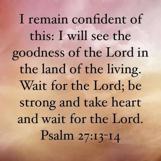 In ministry, there are times that we are tired. We have given everything we have and it seems like we are not making progress. Or we are waiting for God to answer prayers we have prayed for such a long time. There are times when we go through a season of loss or betrayal and we don’t know if we can keep on going. We can be so crushed by what we have gone through that we lose heart. We stop hoping and believing that God can truly bring victory. During one of those really hard times several years ago, I found this verse that absolutely gave me the strength to go on..to keep on believing God and His promises. I am sharing two different versions of this verse because both really have been such an encouragement to me. Psalm 27:13-14 “I would have lost heart, unless I had believed That I would see the goodness of the Lord In the land of the living. Wait on the Lord; Be of good courage, And He shall strengthen your heart; Wait, I say, on the Lord!” *It may seem that God is silent…but He is certainly working powerfully behind the scenes to accomplish His good plans. I love vs. 1 ~ “The Lord is my light and my salvation –whom shall I fear? The Lord is the stronghold of my life –of whom shall I be afraid?” “Dear Lord, When we are afraid, we put our trust in You…You are our light and salvation. We can trust in Your goodness…not just when we get to Heaven…but right here in the land of the living. So we will remain confident in You…our everlasting, all-powerful, and good God. We will wait on you. Help each of us to take one more step forward, believing You and Your promises… may hope and strength rise in our spirits. May we take heart and wait for You…to walk in our calling…to serve one more weekend…to teach one more class… because maybe today… just maybe… we will reach one more soul for You.”